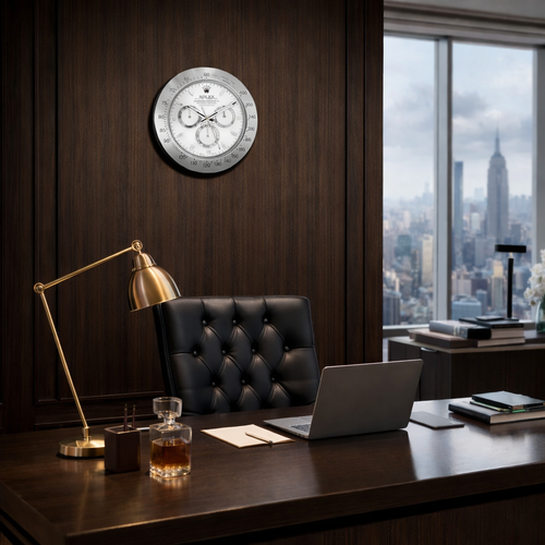 Elevate your space with this striking wall clock, inspired by the legendary GMT Master design. Its iconic 'Pepsi' bezel and premium craftsmanship make it a stunning centerpiece and practical timepiece.